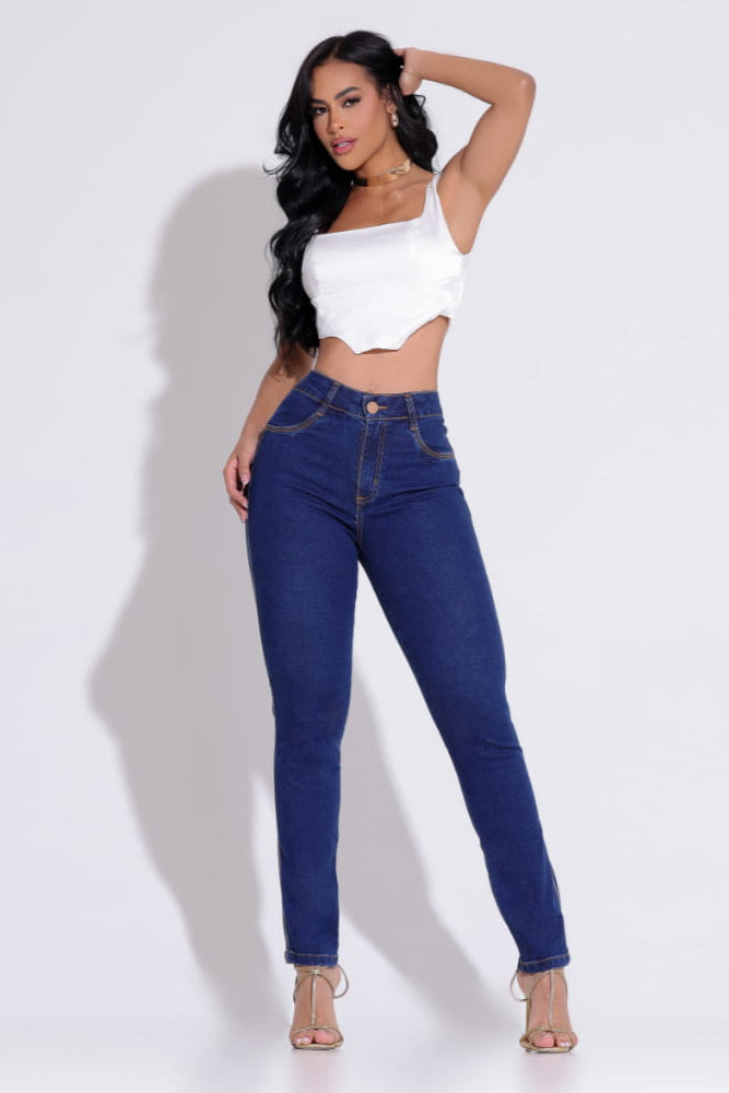 Calça Jeans Feminina Skinny Azul Escuro Cintura Alta Power Stretch - AIG40122