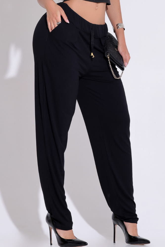 Indispensável no closet feminino, esta calça preta é a definição de peça coringa. Sua modelagem soltinha e tecido respirável a tornam perfeita para diversas ocasiões. Combine com tênis e uma t-shirt para um look comfy e despojado, ou aposte em saltos e uma blusa sofisticada para um visual mais arrumado e elegante. Ideal para o home office, um passeio relaxante ou até mesmo um evento informal, ela transita facilmente entre estilos, garantindo sempre um look atual, confortável e cheio de personalidade. Invista na praticidade e no requinte desta peça única!