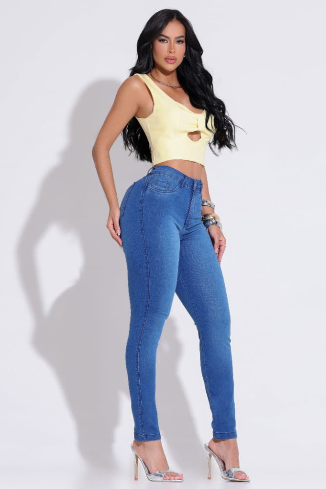 Perfeita para todas as ocasiões, esta calça jeans skinny transita facilmente entre looks casuais e produções mais elaboradas. Combine com tênis e sua t-shirt favorita para um visual despojado e confortável no dia a dia, ou aposte em saltos, um top elegante e acessórios para um look poderoso e cheio de estilo para a noite. Seja qual for sua escolha, a Calça Jeans Skinny Azul Cintura Alta Power Stretch garante conforto, estilo e a confiança de estar sempre bem vestida. Invista e sinta a diferença!
